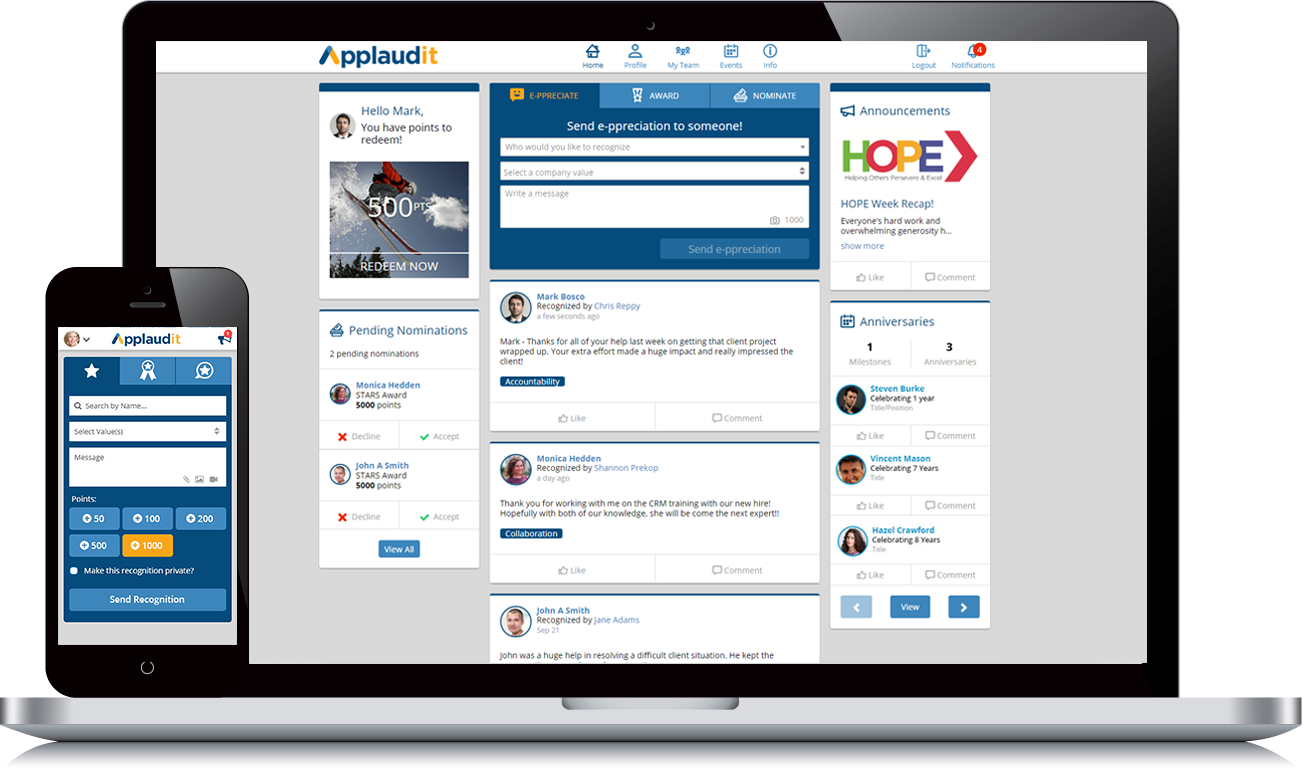 The Applaudit cloud-based app is mobile friendly and allows employers to engage and reward employees in a social media context.
